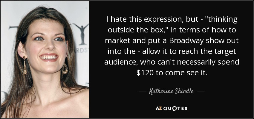 I hate this expression, but - "thinking outside the box," in terms of how to market and put a Broadway show out into the - allow it to reach the target audience, who can't necessarily spend $120 to come see it.