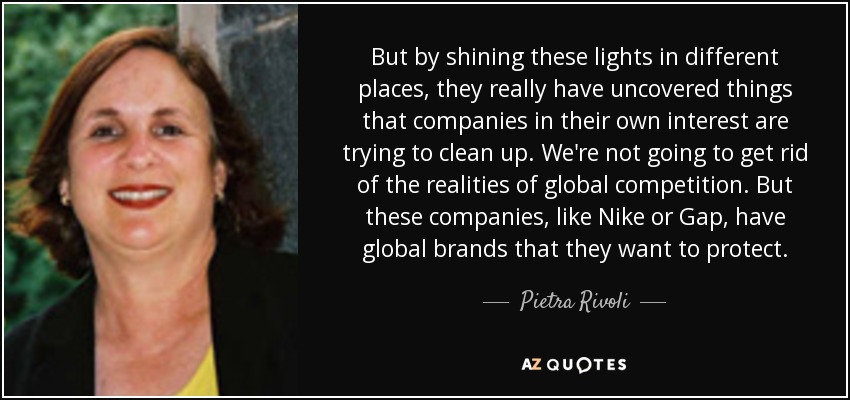 You need companies investing in these countries, so women have employment opportunities, and you also need these forces of conscience. Without the activists, in the United States we would still have child labor, we would still have 16-hour days.