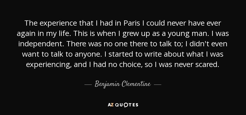 The experience that I had in Paris I could never have ever again in my life. This is when I grew up as a young man. I was independent. There was no one there to talk to; I didn't even want to talk to anyone. I started to write about what I was experiencing, and I had no choice, so I was never scared.