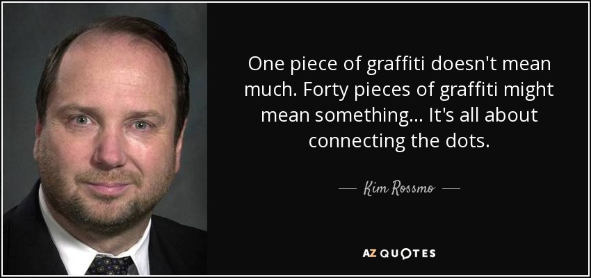 One piece of graffiti doesn't mean much. Forty pieces of graffiti might mean something... It's all about connecting the dots.
