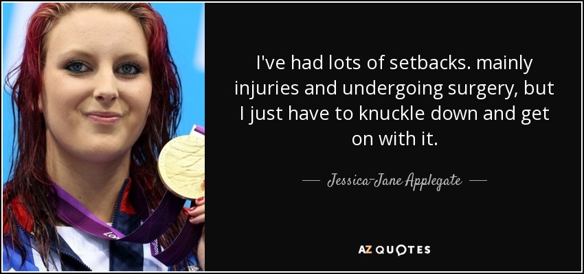 I've had lots of setbacks. mainly injuries and undergoing surgery, but I just have to knuckle down and get on with it.