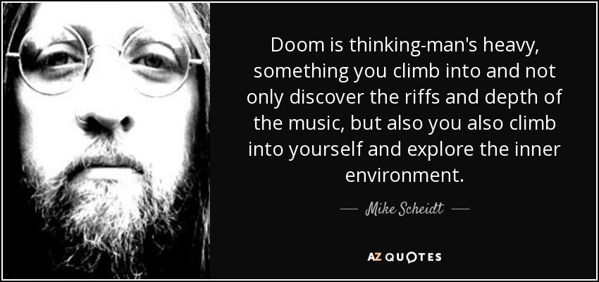 Doom is thinking-man's heavy, something you climb into and not only discover the riffs and depth of the music, but also you also climb into yourself and explore the inner environment.