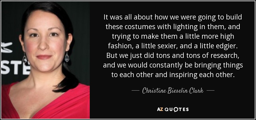 It was all about how we were going to build these costumes with lighting in them, and trying to make them a little more high fashion, a little sexier, and a little edgier. But we just did tons and tons of research, and we would constantly be bringing things to each other and inspiring each other.