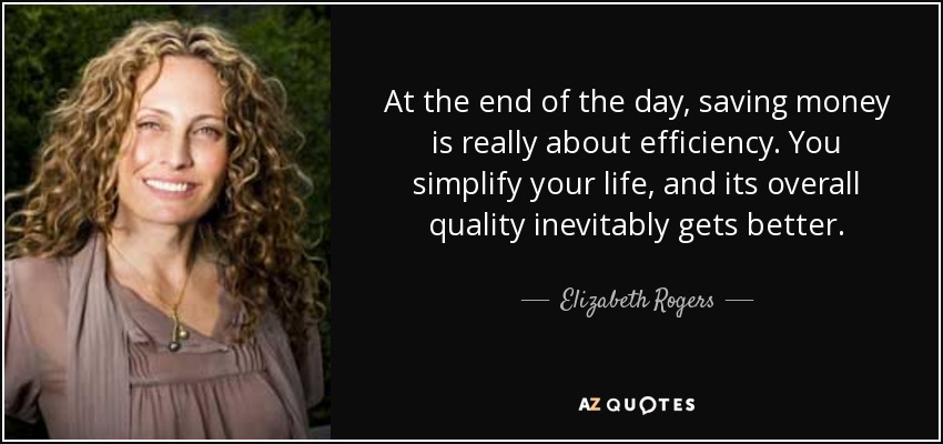 At the end of the day, saving money is really about efficiency. You simplify your life, and its overall quality inevitably gets better.