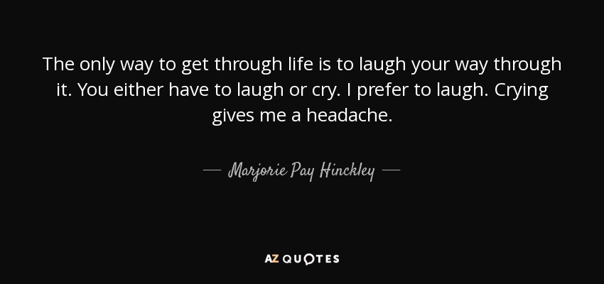 The only way to get through life is to laugh your way through it. You either have to laugh or cry. I prefer to laugh. Crying gives me a headache.