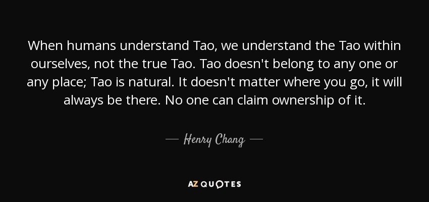 When humans understand Tao, we understand the Tao within ourselves, not the true Tao. Tao doesn't belong to any one or any place; Tao is natural. It doesn't matter where you go, it will always be there. No one can claim ownership of it.