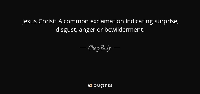 Jesus Christ: A common exclamation indicating surprise, disgust, anger or bewilderment.