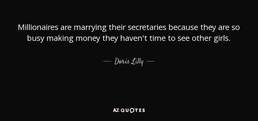 Millionaires are marrying their secretaries because they are so busy making money they haven't time to see other girls.