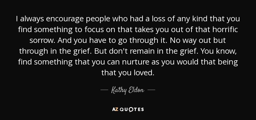 I always encourage people who had a loss of any kind that you find something to focus on that takes you out of that horrific sorrow. And you have to go through it. No way out but through in the grief. But don't remain in the grief. You know, find something that you can nurture as you would that being that you loved.