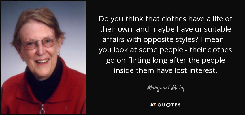 Do you think that clothes have a life of their own, and maybe have unsuitable affairs with opposite styles? I mean - you look at some people - their clothes go on flirting long after the people inside them have lost interest.