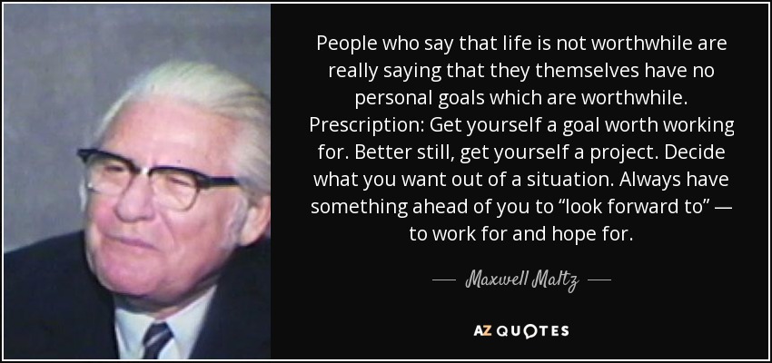 People who say that life is not worthwhile are really saying that they themselves have no personal goals which are worthwhile. Prescription: Get yourself a goal worth working for. Better still, get yourself a project. Decide what you want out of a situation. Always have something ahead of you to “look forward to” — to work for and hope for.
