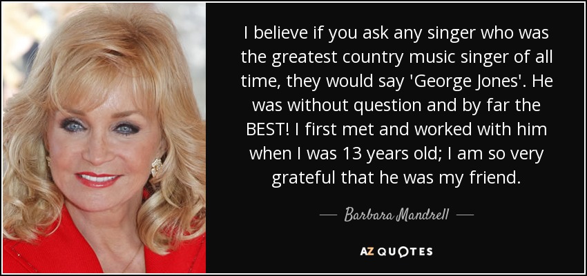 I believe if you ask any singer who was the greatest country music singer of all time, they would say 'George Jones'. He was without question and by far the BEST! I first met and worked with him when I was 13 years old; I am so very grateful that he was my friend.