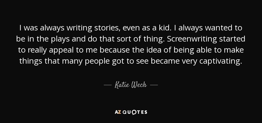 I was always writing stories, even as a kid. I always wanted to be in the plays and do that sort of thing. Screenwriting started to really appeal to me because the idea of being able to make things that many people got to see became very captivating.