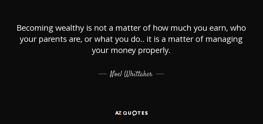 Becoming wealthy is not a matter of how much you earn, who your parents are, or what you do.. it is a matter of managing your money properly.