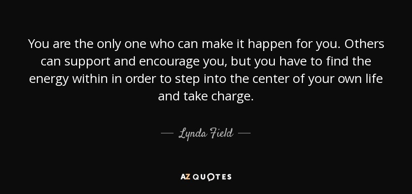 You are the only one who can make it happen for you. Others can support and encourage you, but you have to find the energy within in order to step into the center of your own life and take charge.