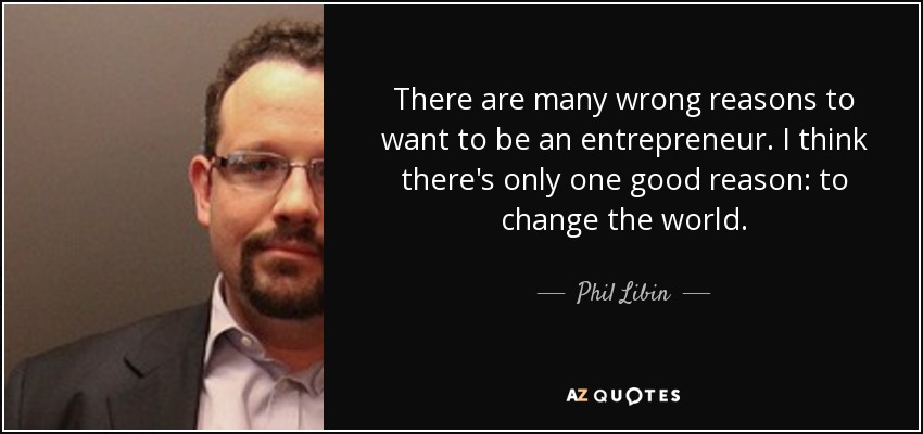 There are many wrong reasons to want to be an entrepreneur. I think there's only one good reason: to change the world.