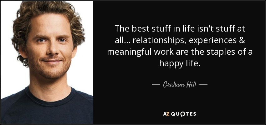 The best stuff in life isn't stuff at all... relationships, experiences & meaningful work are the staples of a happy life.