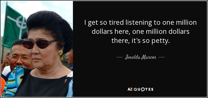 I get so tired listening to one million dollars here, one million dollars there, it's so petty.