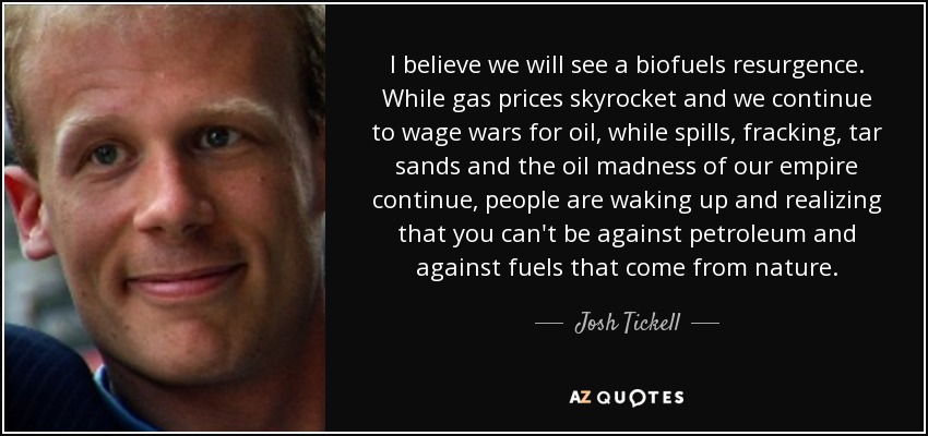 I believe we will see a biofuels resurgence. While gas prices skyrocket and we continue to wage wars for oil, while spills, fracking, tar sands and the oil madness of our empire continue, people are waking up and realizing that you can't be against petroleum and against fuels that come from nature.