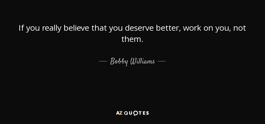 Stop blaming everybody and everything for what's going on. If you really believe that you deserve better, then you would have it.