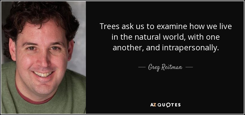 Trees ask us to examine how we live in the natural world, with one another, and intrapersonally.