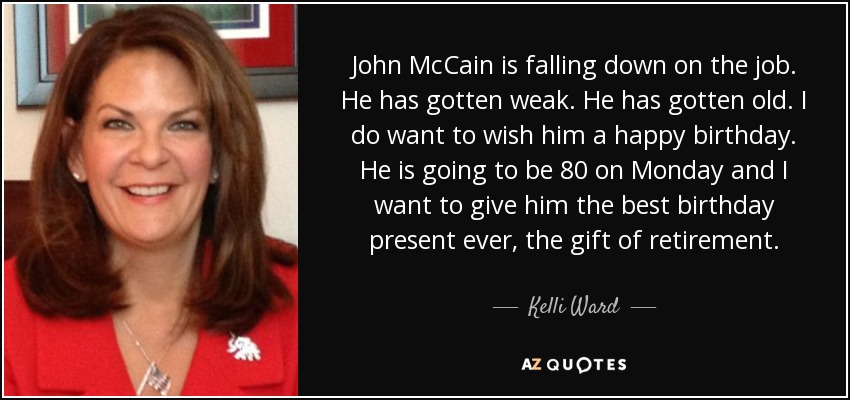 John McCain is falling down on the job. He has gotten weak. He has gotten old. I do want to wish him a happy birthday. He is going to be 80 on Monday and I want to give him the best birthday present ever, the gift of retirement.