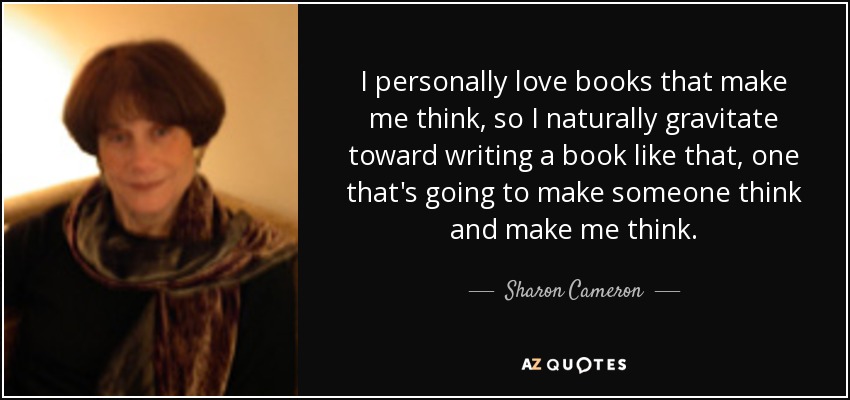 I personally love books that make me think, so I naturally gravitate toward writing a book like that, one that's going to make someone think and make me think.