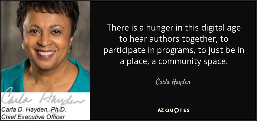 There is a hunger in this digital age to hear authors together, to participate in programs, to just be in a place, a community space.