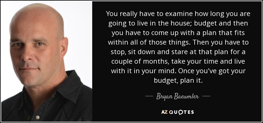 You really have to examine how long you are going to live in the house; budget and then you have to come up with a plan that fits within all of those things. Then you have to stop, sit down and stare at that plan for a couple of months, take your time and live with it in your mind. Once you've got your budget, plan it.