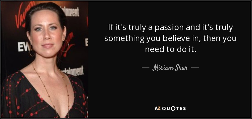 If it's truly a passion and it's truly something you believe in, then you need to do it.