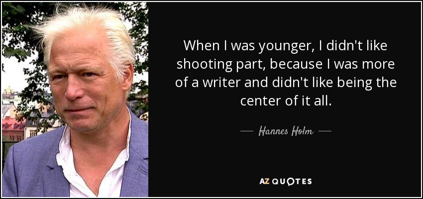 When I was younger, I didn't like shooting part, because I was more of a writer and didn't like being the center of it all.