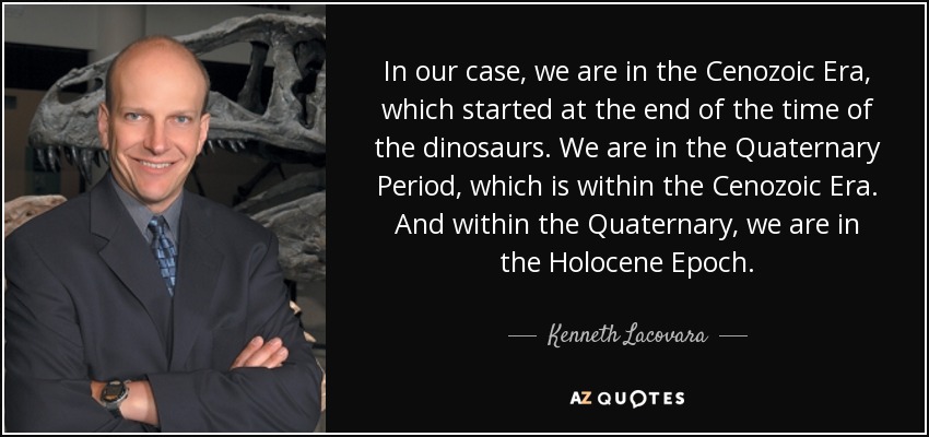 In our case, we are in the Cenozoic Era, which started at the end of the time of the dinosaurs. We are in the Quaternary Period, which is within the Cenozoic Era. And within the Quaternary, we are in the Holocene Epoch.
