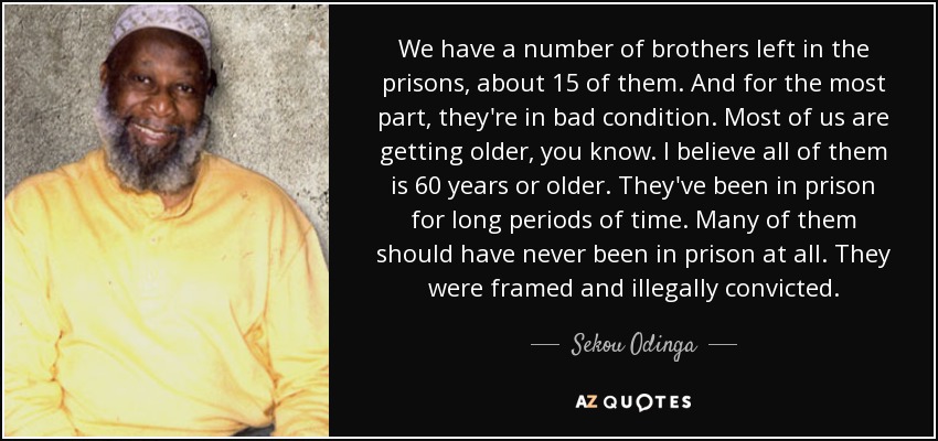 We have a number of brothers left in the prisons, about 15 of them. And for the most part, they're in bad condition. Most of us are getting older, you know. I believe all of them is 60 years or older. They've been in prison for long periods of time. Many of them should have never been in prison at all. They were framed and illegally convicted.