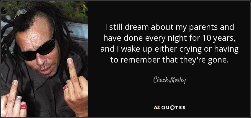 I still dream about my parents and have done every night for 10 years, and I wake up either crying or having to remember that they're gone.
