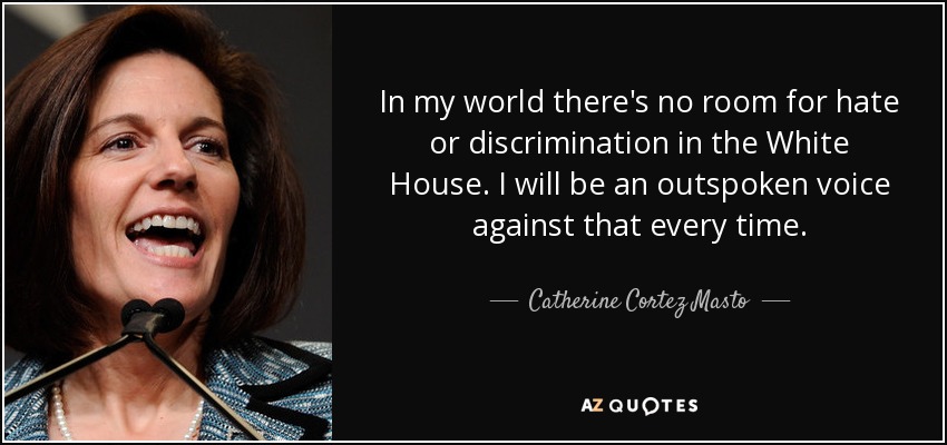 In my world there's no room for hate or discrimination in the White House. I will be an outspoken voice against that every time.