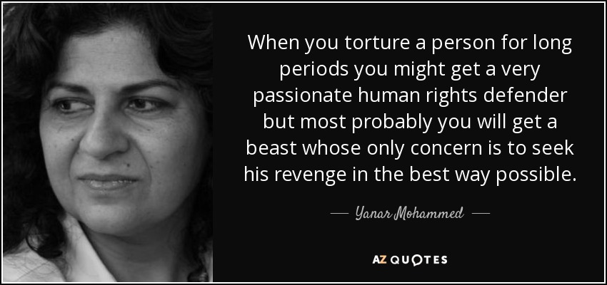 When you torture a person for long periods you might get a very passionate human rights defender but most probably you will get a beast whose only concern is to seek his revenge in the best way possible.