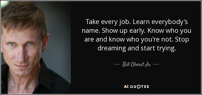 Take every job. Learn everybody's name. Show up early. Know who you are and know who you're not. Stop dreaming and start trying.