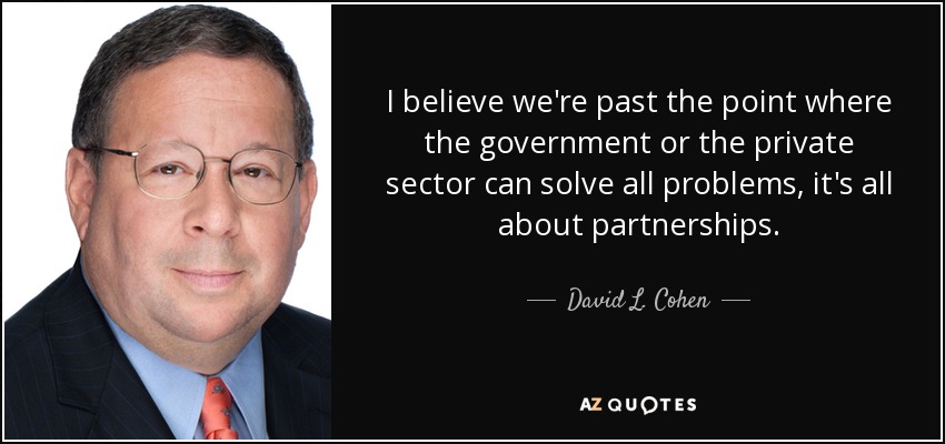 I believe we're past the point where the government or the private sector can solve all problems, it's all about partnerships.
