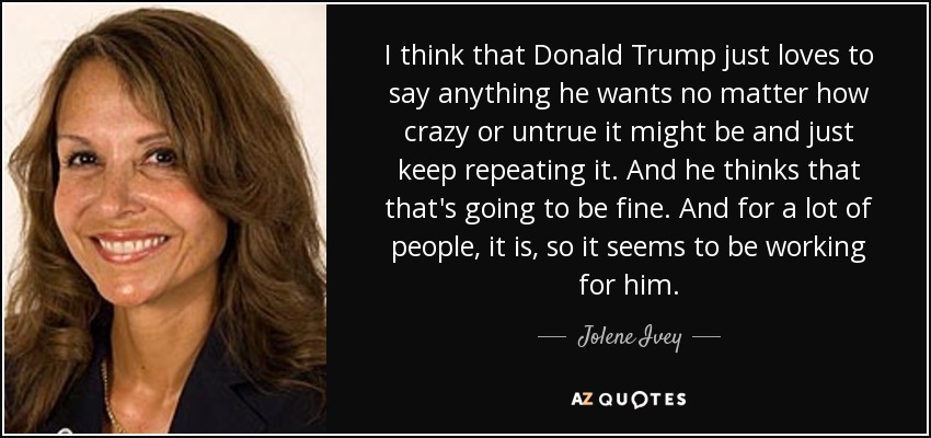 I think that Donald Trump just loves to say anything he wants no matter how crazy or untrue it might be and just keep repeating it. And he thinks that that's going to be fine. And for a lot of people, it is, so it seems to be working for him.