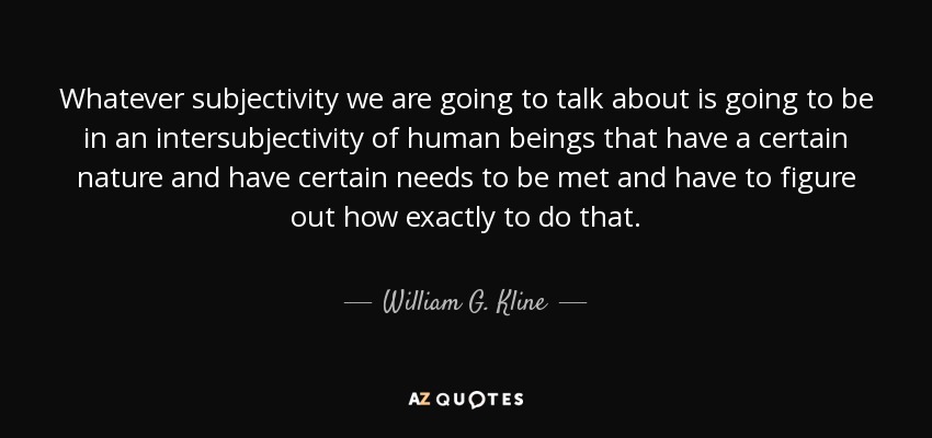 Whatever subjectivity we are going to talk about is going to be in an intersubjectivity of human beings that have a certain nature and have certain needs to be met and have to figure out how exactly to do that.