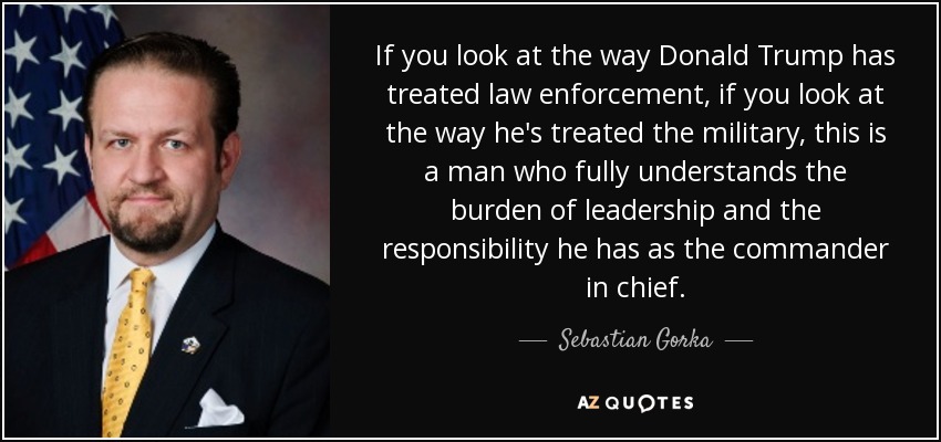 If you look at the way Donald Trump has treated law enforcement, if you look at the way he's treated the military, this is a man who fully understands the burden of leadership and the responsibility he has as the commander in chief.