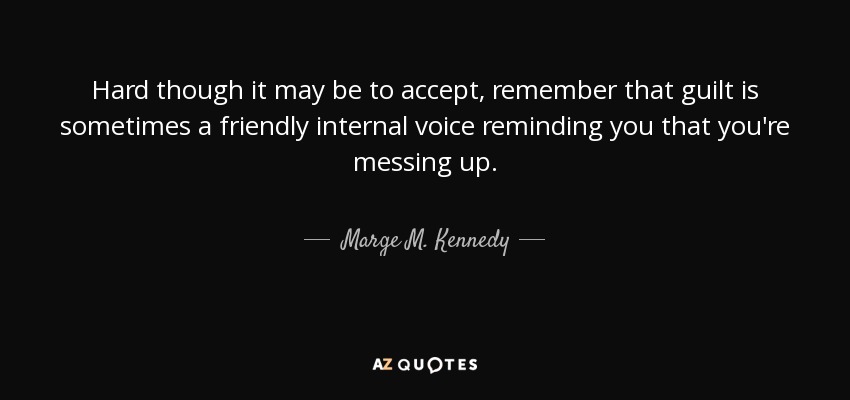 Hard though it may be to accept, remember that guilt is sometimes a friendly internal voice reminding you that you're messing up.
