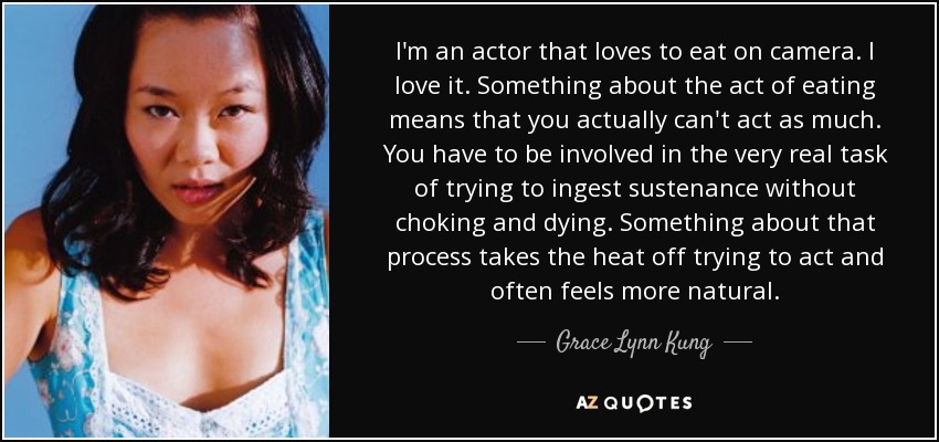 I'm an actor that loves to eat on camera. I love it. Something about the act of eating means that you actually can't act as much. You have to be involved in the very real task of trying to ingest sustenance without choking and dying. Something about that process takes the heat off trying to act and often feels more natural.