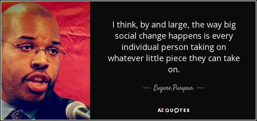 I think, by and large, the way big social change happens is every individual person taking on whatever little piece they can take on.