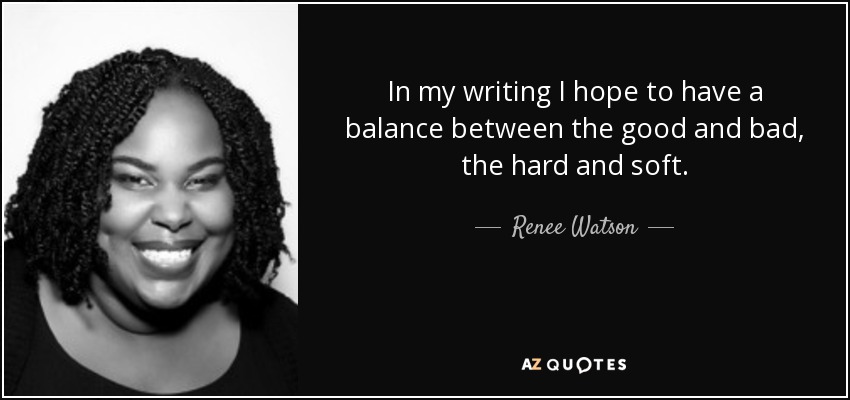 In my writing I hope to have a balance between the good and bad, the hard and soft.