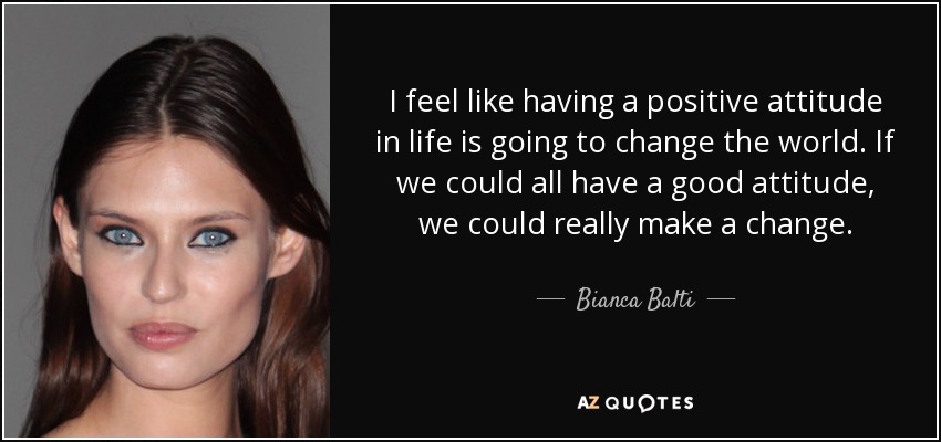 I feel like having a positive attitude in life is going to change the world. If we could all have a good attitude, we could really make a change.