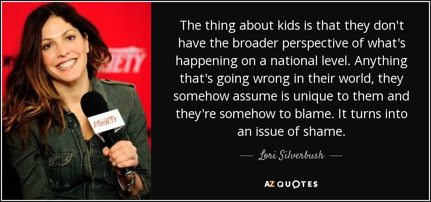 The thing about kids is that they don't have the broader perspective of what's happening on a national level. Anything that's going wrong in their world, they somehow assume is unique to them and they're somehow to blame. It turns into an issue of shame.