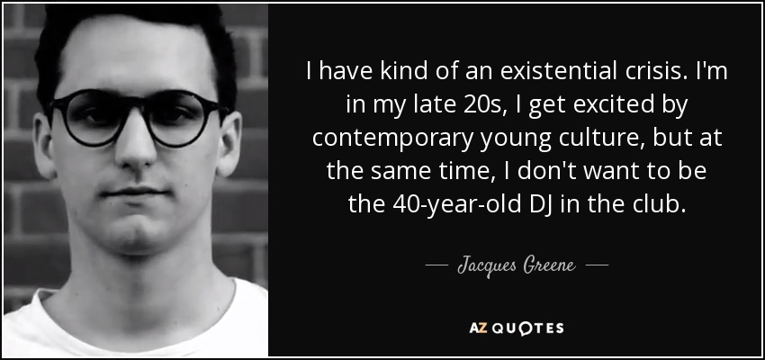 I have kind of an existential crisis. I'm in my late 20s, I get excited by contemporary young culture, but at the same time, I don't want to be the 40-year-old DJ in the club.
