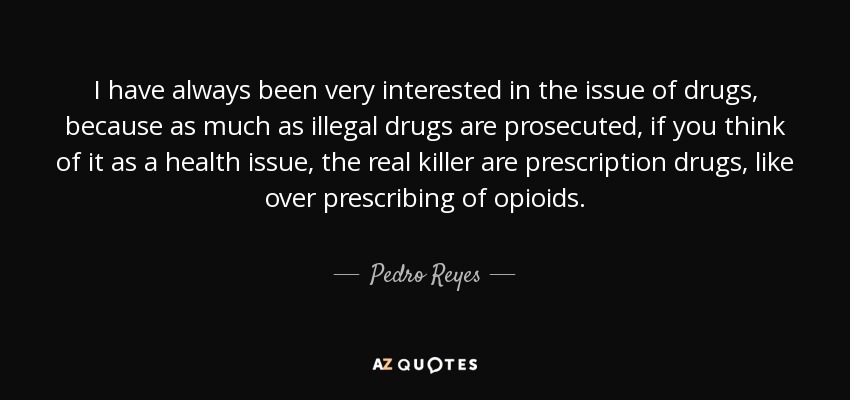 I have always been very interested in the issue of drugs, because as much as illegal drugs are prosecuted, if you think of it as a health issue, the real killer are prescription drugs, like over prescribing of opioids.
