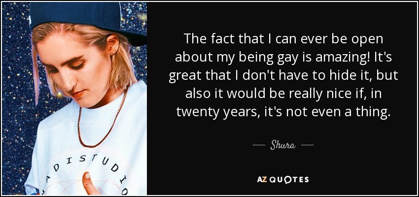 The fact that I can ever be open about my being gay is amazing! It's great that I don't have to hide it, but also it would be really nice if, in twenty years, it's not even a thing.